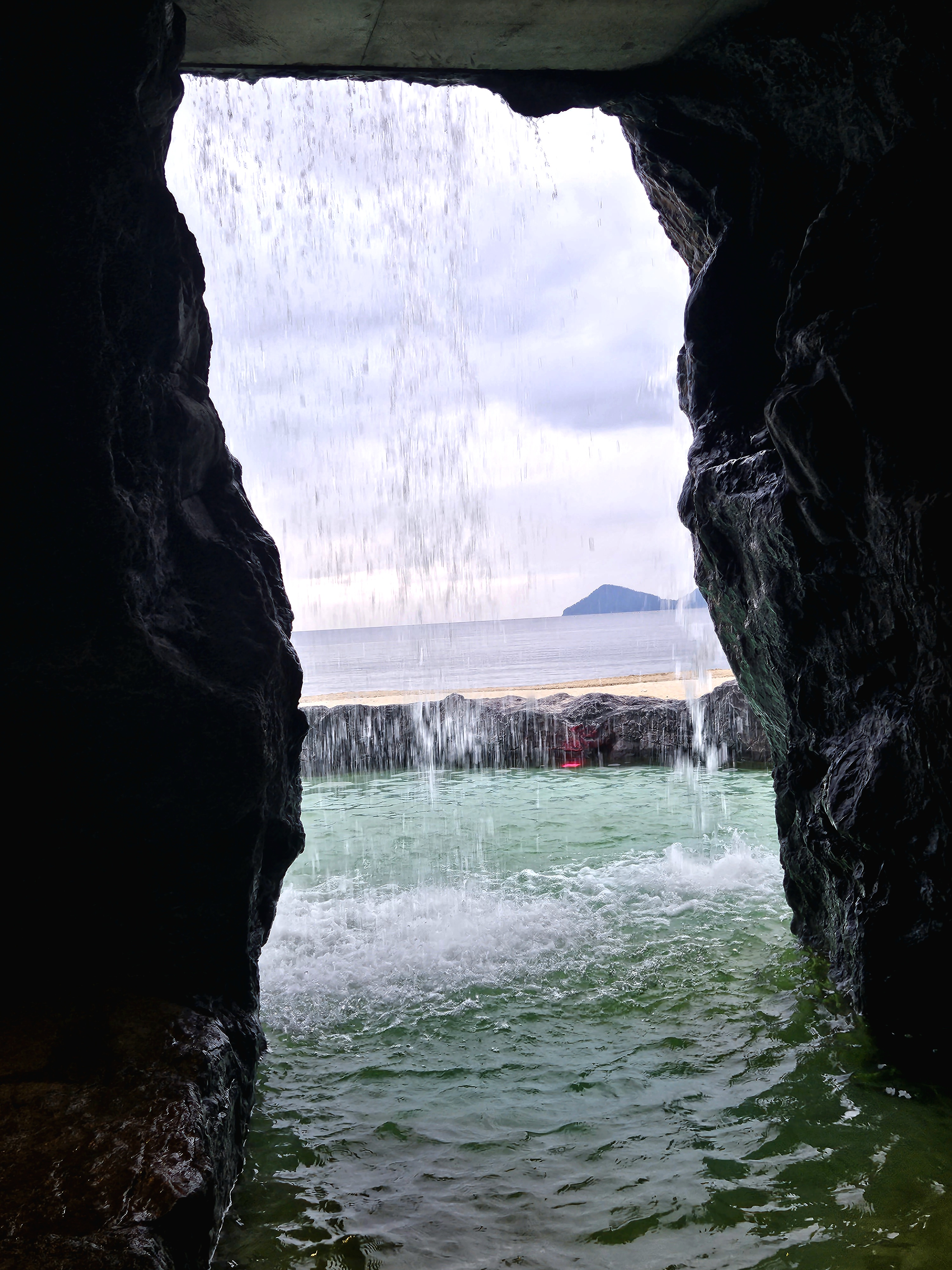 변산해수욕장에는 일반 해수욕장에서는 보지 못하는 신기한 시설들이 많은데요. 그중에서 일반분들이 잘 모를 수도 있겠다 하는 부분이 바로 이곳 폭포 뒤편이었습니다. 겉으로 보았을 때에는 작은 폭포가 설치되어 있구나~라고 생각하고 지나가실 수도 있겠지만, 돗자리를 가져오시지 못해서 모래 위에는 앉지 못하지만 바다를 쳐다보고 싶으신 분들은 이곳에 방문하시면 좋을 것 같습니다. 숨겨진 공간이지만 굉장히 내부가 넓은 편이며, 얼핏 보면 미술관과 같은 형태를 하고 있습니다. 더욱 안쪽으로 들어가면 동굴같이 생긴 공간이 나오면서 사진을 찍기 매우 좋은 스폿이 있으니 지나치지 마시고 꼭 한번 들려보세요!