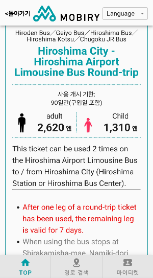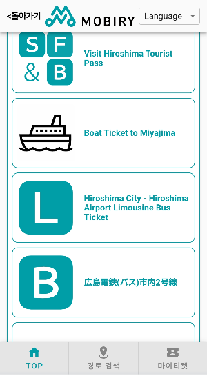 7. 스크롤을 내려 L모양이 적힌 히로시마 시티 리무진버스티켓을 클릭한다.
