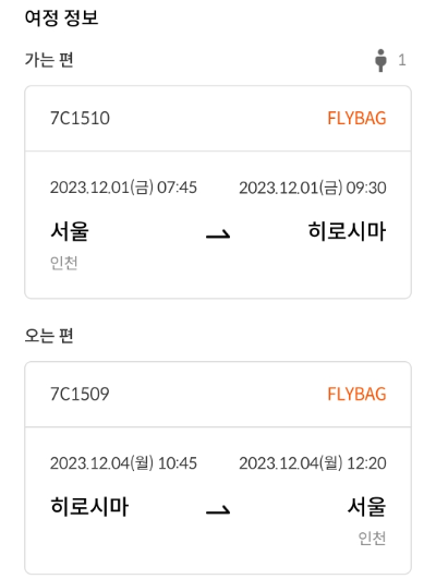 여러분.. 안타까운 소식을 하나 전해야겠어요 ㅠ 히로시마는 워낙 여행지로써 유명한 곳이 아닌 데다가 코로나로 인해 많은 직항들이 사라져서 현재는 제주항공으로 운행되는 하나의 비행기뿐이랍니다 ㅠㅠ 나중에는 더 많은 비행기 스케줄표가 생겨서 다양하게 고르실 수 있으면 좋겠네요.