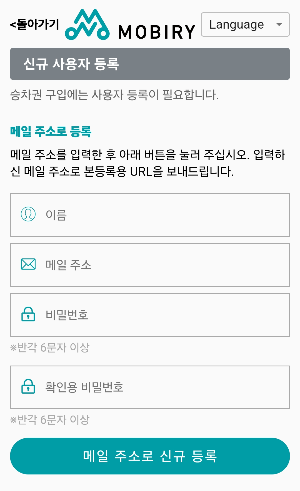 3. 아래로 스크롤을 내려 신규 사용자 등록을 누른 후, 하기와 같이 메일주소를 등록하거나 더 스크롤을 내려 구글이나 페이스북으로 가입한다.